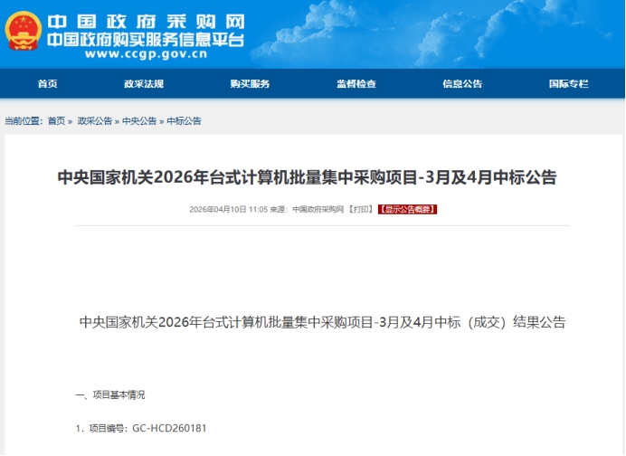 4月10日,中央國家機關公布了3月和4月的臺式機批量集采結(jié)果。本次采購總預算達到810萬元,五個配置包全部中標,無一流標。今天我們就來拆解這份剛剛出爐的央采臺式機公告所隱藏的一些背后邏輯和趨勢!