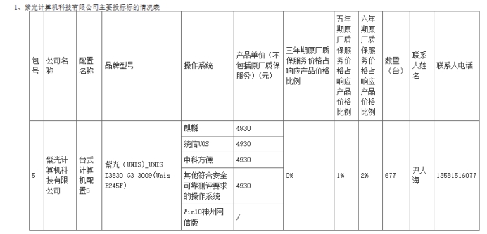 首先我們來看下中標金額,此次紫光計算以333.76萬元位居第一,單價4930元,中標數(shù)量達677臺,占據(jù)本次采購總量1620臺的41.8%,成為本輪央采的最大贏家。