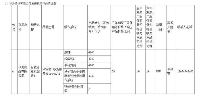 另外,華為終端以288.99萬元位列第二,產(chǎn)品單價4940元,中標數(shù)量585臺。與紫光僅差不到6個百分點。華為擎云W515系列繼續(xù)走ARM路線。