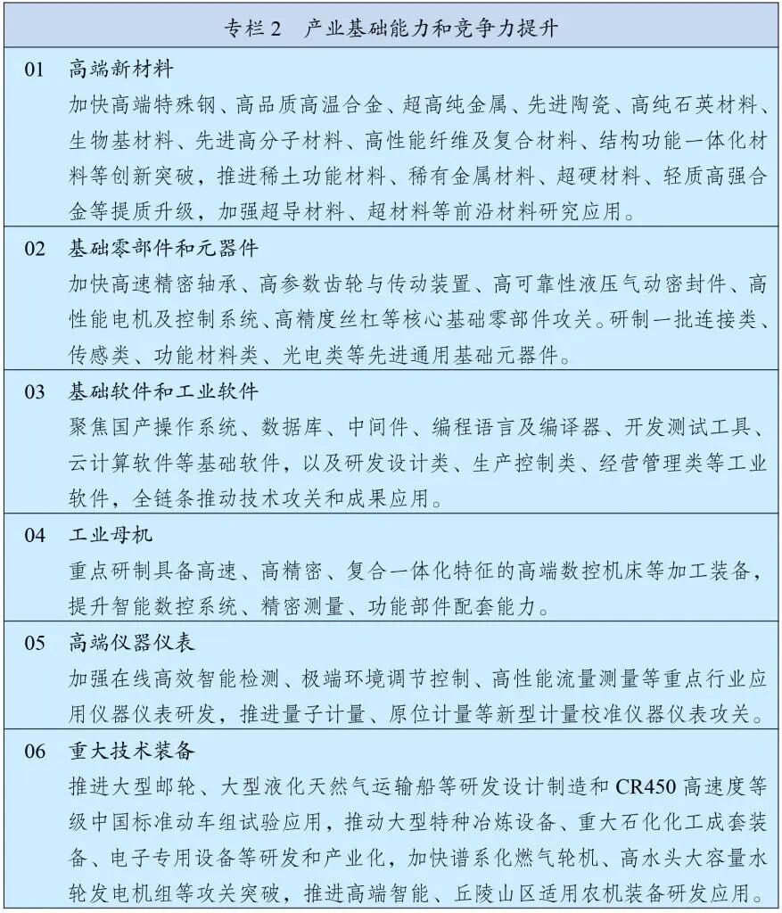 規(guī)劃綱要首次在"產(chǎn)業(yè)基礎(chǔ)能力和競(jìng)爭(zhēng)力提升"專欄中,將"基礎(chǔ)軟件和工業(yè)軟件"與高端新材料、基礎(chǔ)零部件并列為基礎(chǔ)再造工程的核心方向。文件明確聚焦國產(chǎn)操作系統(tǒng)、數(shù)據(jù)庫、中間件、編程語言及編譯器等基礎(chǔ)軟件全鏈條技術(shù)攻關(guān),這相當(dāng)于為信創(chuàng)產(chǎn)業(yè)劃定了清晰的作戰(zhàn)地圖。