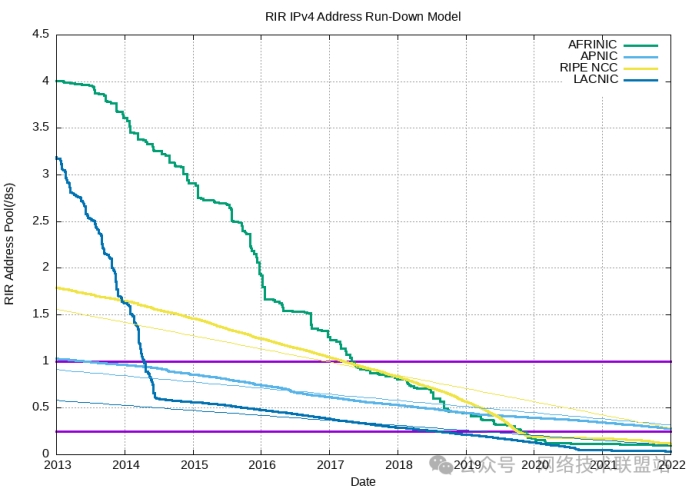 IPv4 剩余 RIR 地址池消耗量預(yù)測(cè)